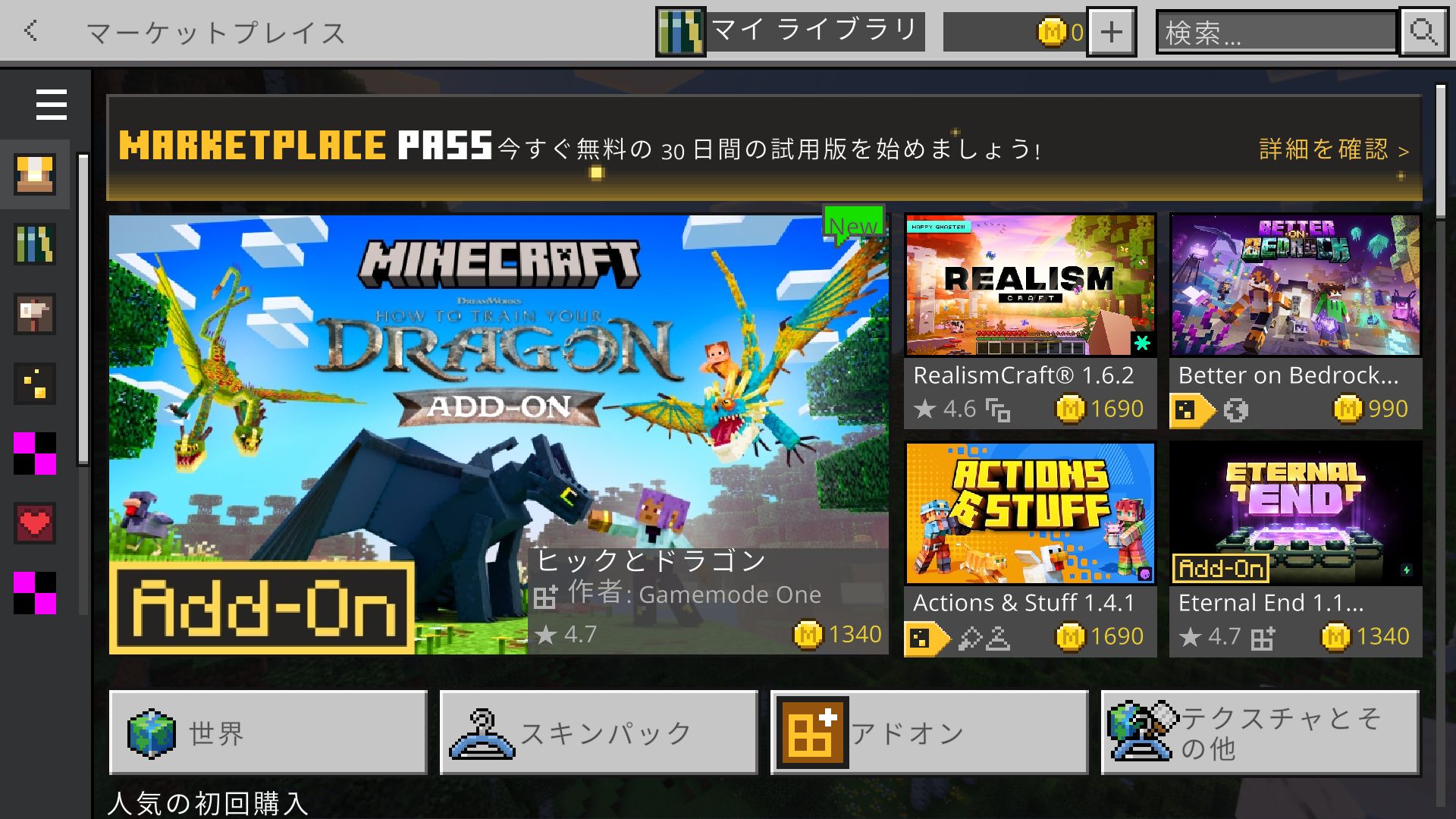 「Minecraftのスキンやマーケットプレイスを使いたいけど、課金はしたくない…」